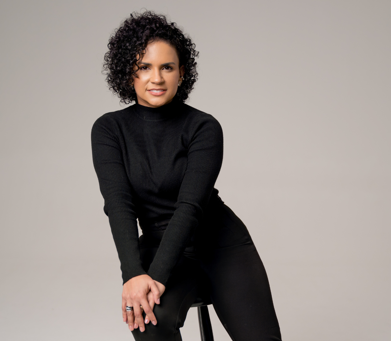 Minha presença comunica antes mesmo das palavras. Sou uma mulher negra, de cabelo cacheado, tatuada e de sorriso largo. Tenho voz firme, dicção precisa e carrego, com naturalidade, a força e a beleza do sotaque pernambucano — sem caricaturas, com identidade.